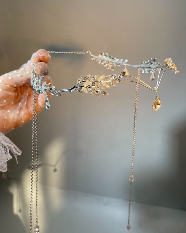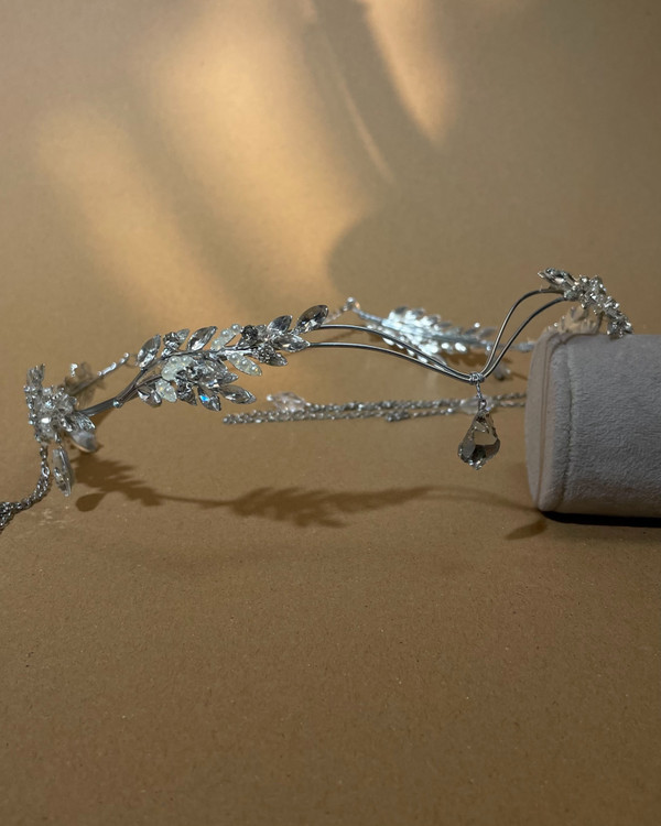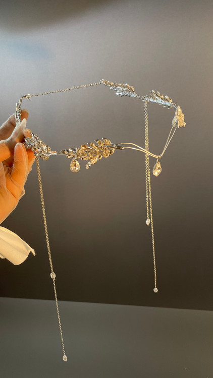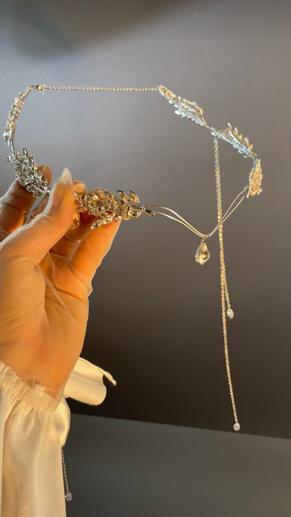 تاج پیشانی ؛ ترکیبی از برگ های فلزی و سنگ های اصل اتریشی روی بدنه استیل ، پشت کار سایزر و قفل دارد و استیل است