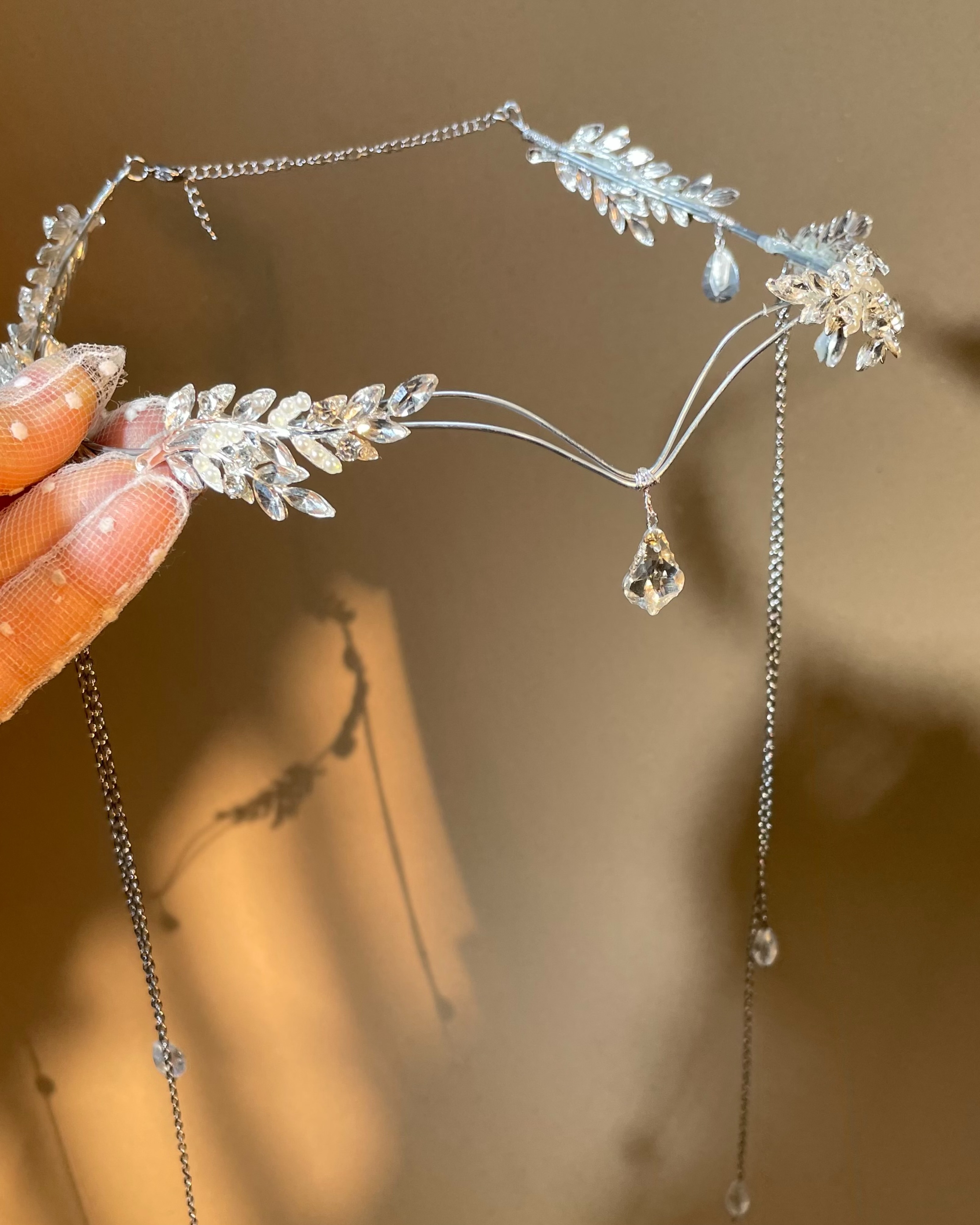 تاج پیشانی ؛ ترکیبی از برگ های فلزی و سنگ های اصل اتریشی روی بدنه استیل ، پشت کار سایزر و قفل دارد و استیل است